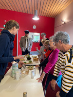 Avec Émilie Échavé, les explorateurs d'un jour pluvieux, ont découvert les qualités et le goût des orties crues et des feuilles de ronces, de chênes, de gaillets et d'autres. C'est finalement mouillé, mais pas trempé que nous avons fini notre tour des friches à la guinguette de Billère, à préparer et déguster quelques fromages, sauces et omelettes ensauvagées de nos récoltes.